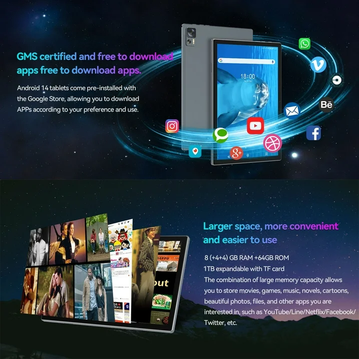 🌲【Powered by Android 14】Stay ahead of the curve with the latest GMS-certified Android 14 operating system, pre-loaded with Google Play for seamless access to Facebook, Twitter, YouTube, TikTok, Instagram, and more popular social media platforms. Enjoy effortless playback of various video formats and connect your favorite headphones via the 3.5mm audio jack.